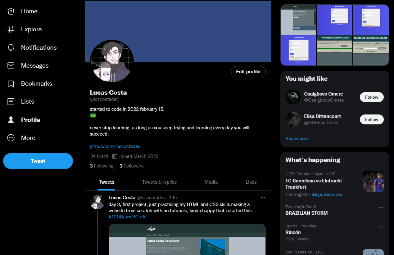 And then in 2022 this passion for web development came about, and i've been studying and practicing front-end ever since...